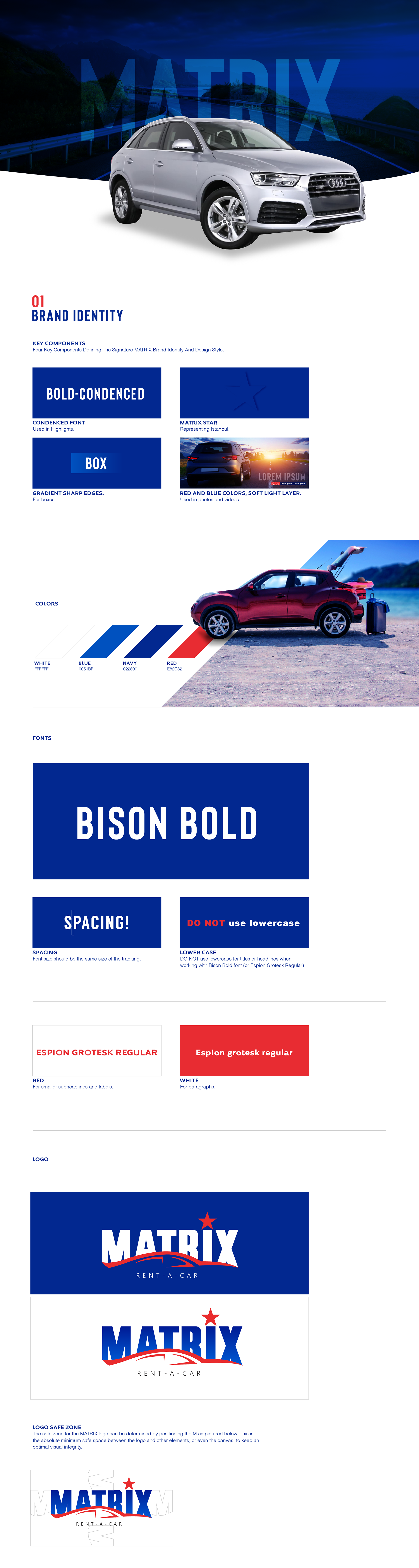 MATRIX is a car rental shop based in Istanbul, the logo was provided by the client, and were asked to create a compatible visual identity reflecting the feel of Istanbul in all of their visuals even in social media posts.
